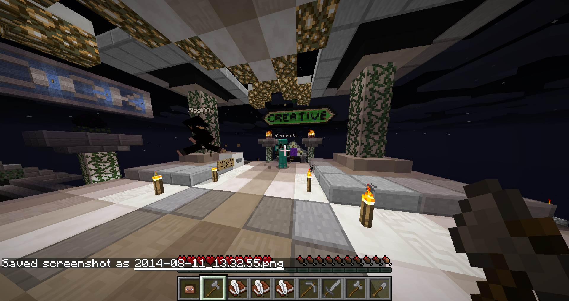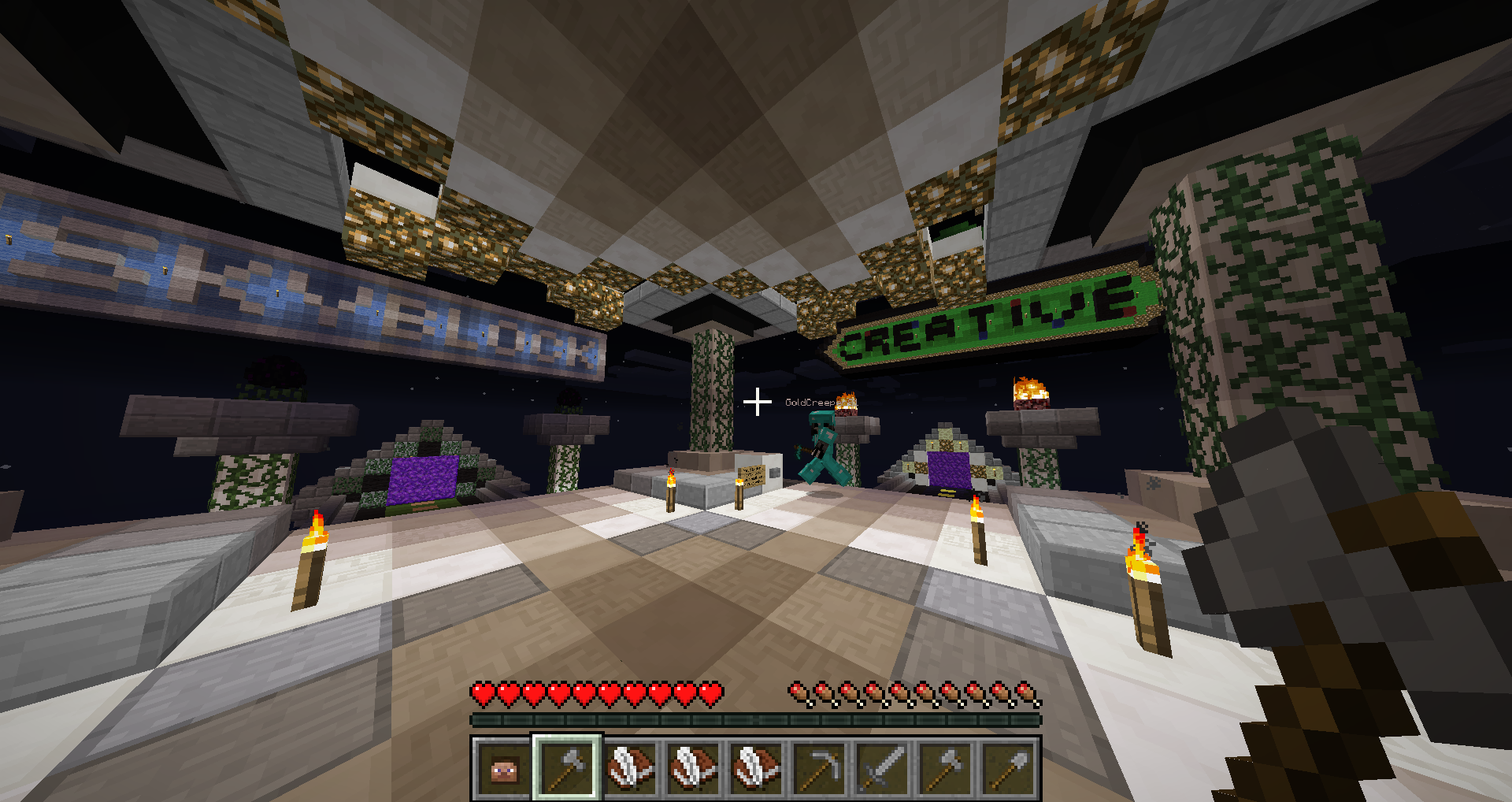 I was at the lobby at 1:33 USA/new york time/GMT-5 and I saw goldcreeper wearing diamond armour.