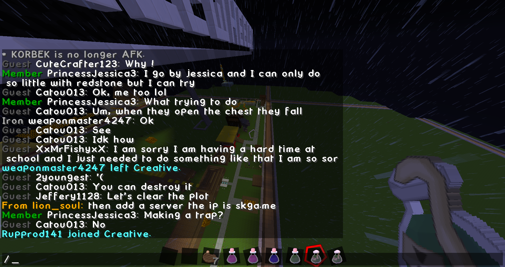I logged on in creative between 7:00 and 7:32 GMT-5 usa time and lion_soul told me an IP address when I logged on. Evidence is here. He was telling me a server IP.