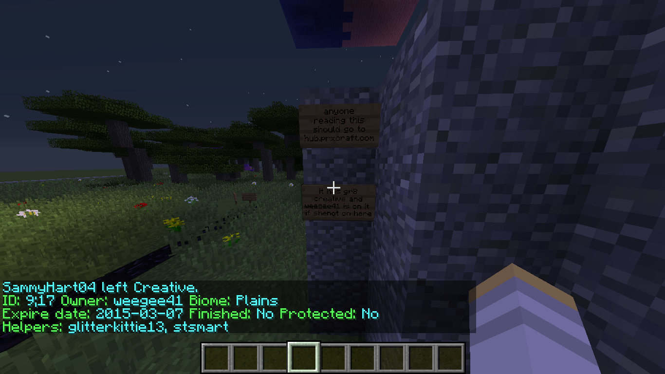 Action: I was exploring plots and I came across this sign that had some text on saying I should go to another server because of a few reasons that are listed in the screenshot.