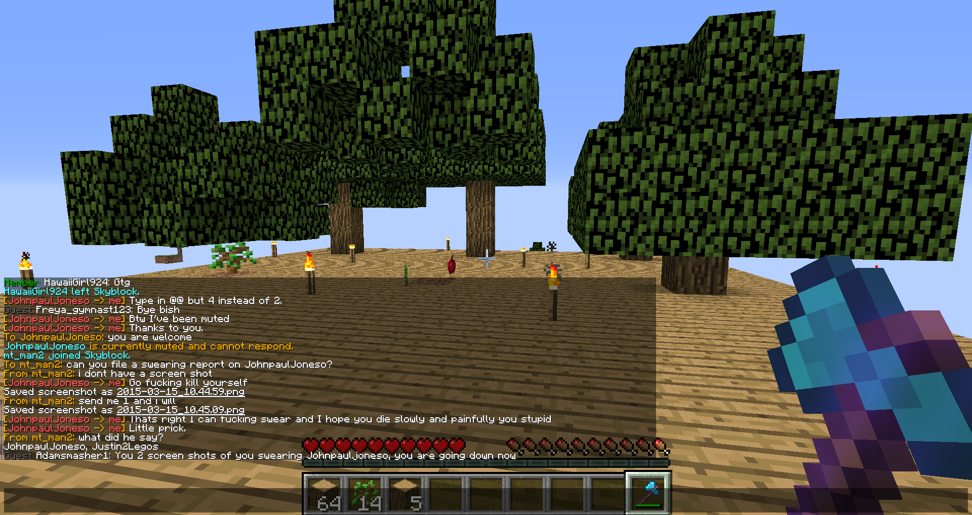 this time there was a player johnpauljoneso, swearing and cussing my friend out (Adamsmasher1). he took some screen shots of the incident, just before johnpauljoneso left the game once the words "report you" were said.