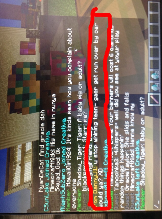 Ok so, DannyJ1 was complaining about others. I told him nicely to stop because its kind of mean. So what he told me should be circled in red. This happend at 5:07 pm GMT-5. If I left anything out that I was supposed to put please tell me! Thank you!