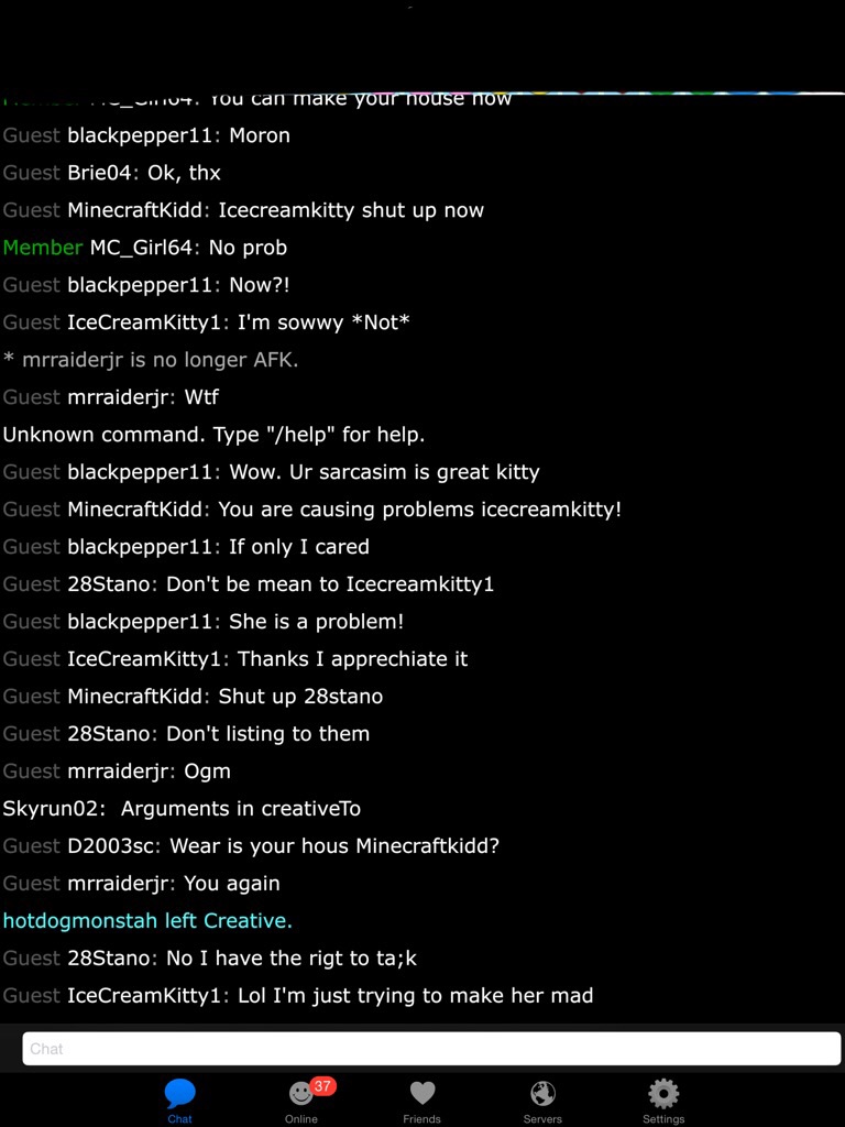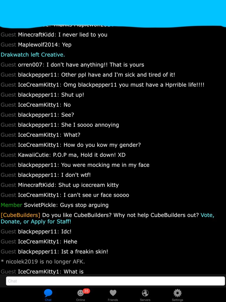 An argument between blackpepper11 and icecreamkitty1, Creative at around 9:31pm to 9:35pm ( gmt0 )