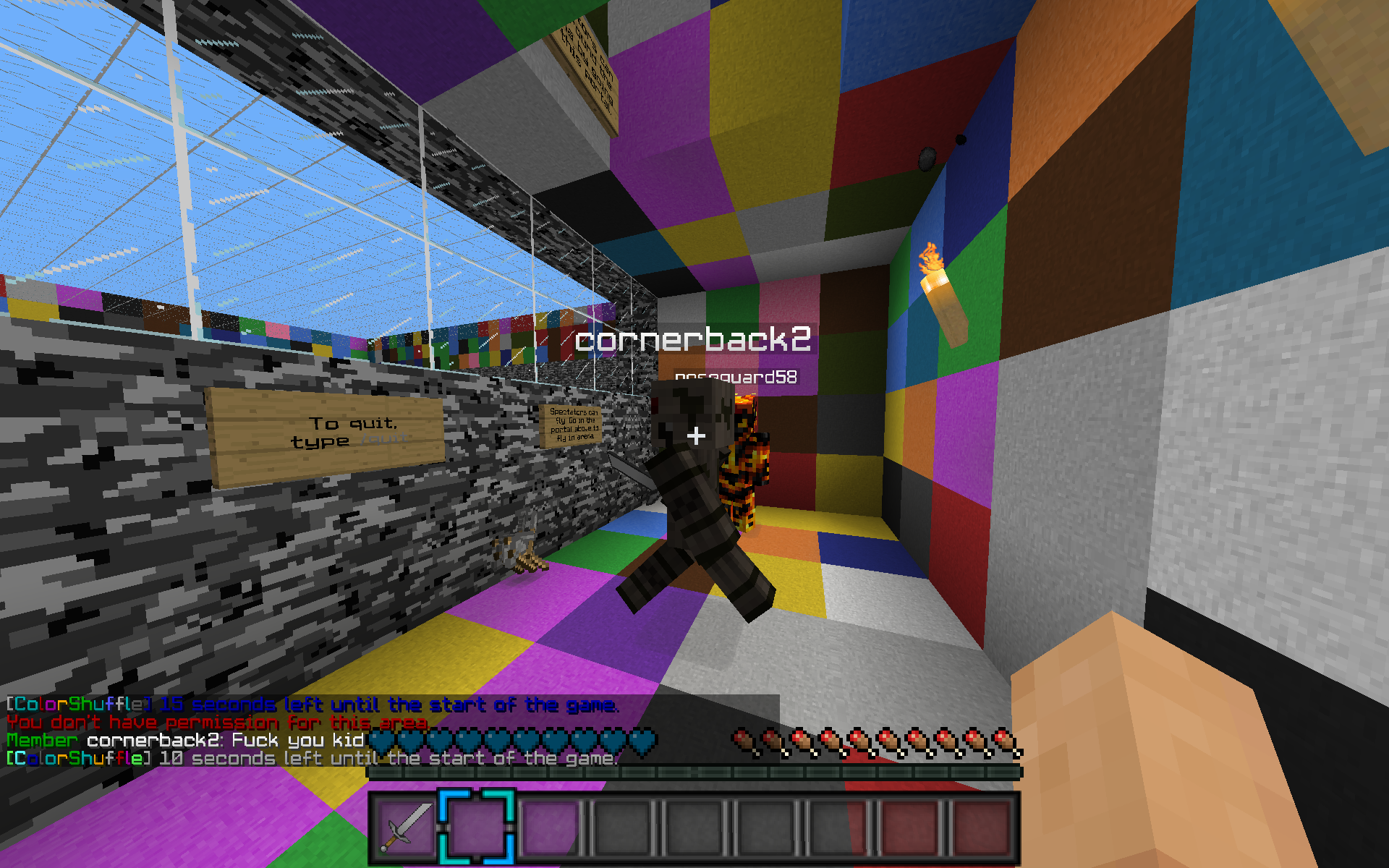 This is MarioMaster38. I want to post about the player cornerback2 saying rude words directed at me because I was mad at him and his buddy for teaming up on me in Splurge. Then when i joined his Color Shuffle game, he says "F*ck you, b*tch", and then when I say "Watch your language", he responded with "F*ck you, kid". I was able to get a screenshot with his insolence. Please deal with the problem by at least temp muting him.