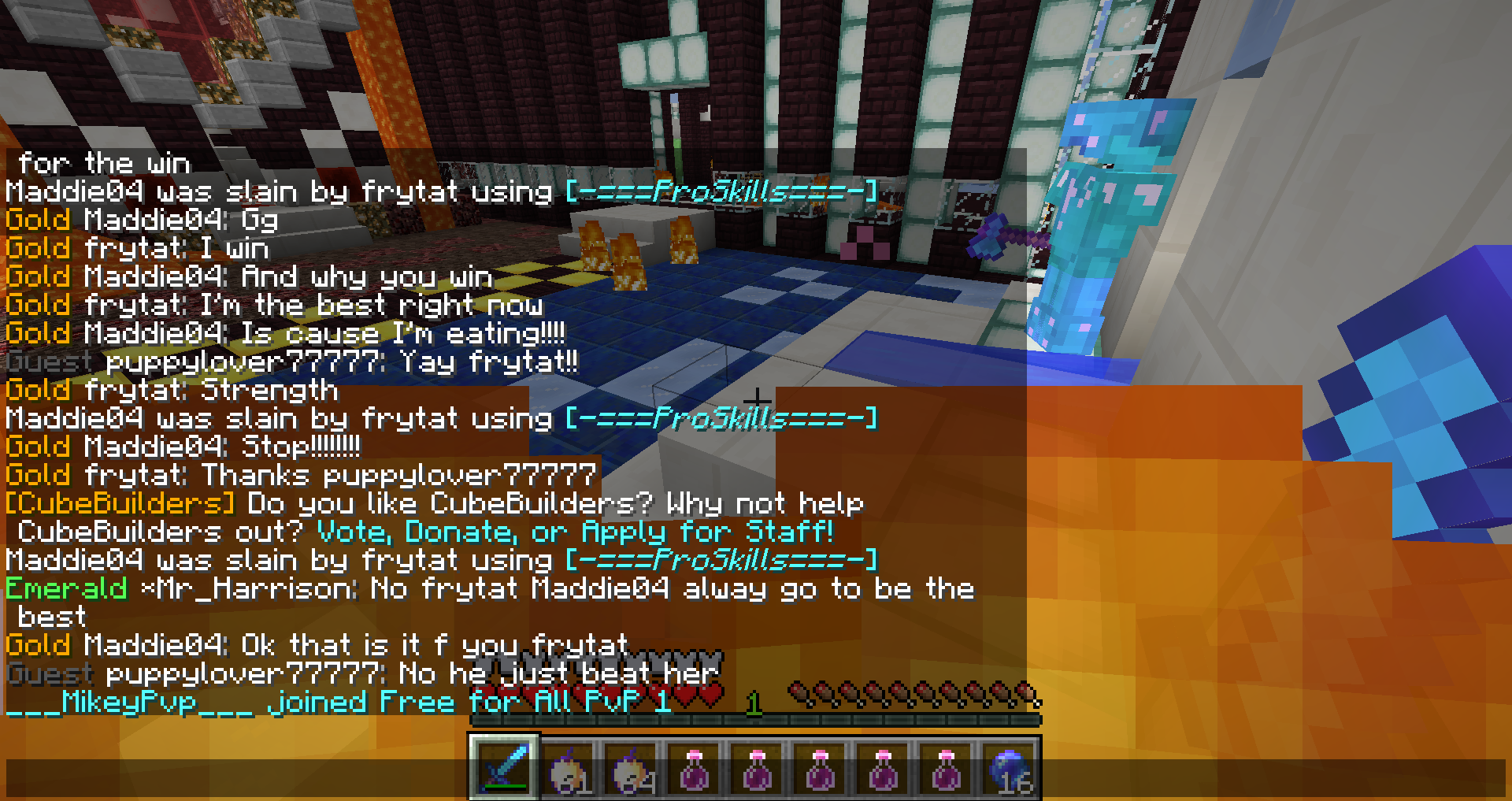 Okay, so in free for all pvp I saw Maddie04 say this to me just because I was pvping her and she lost against me