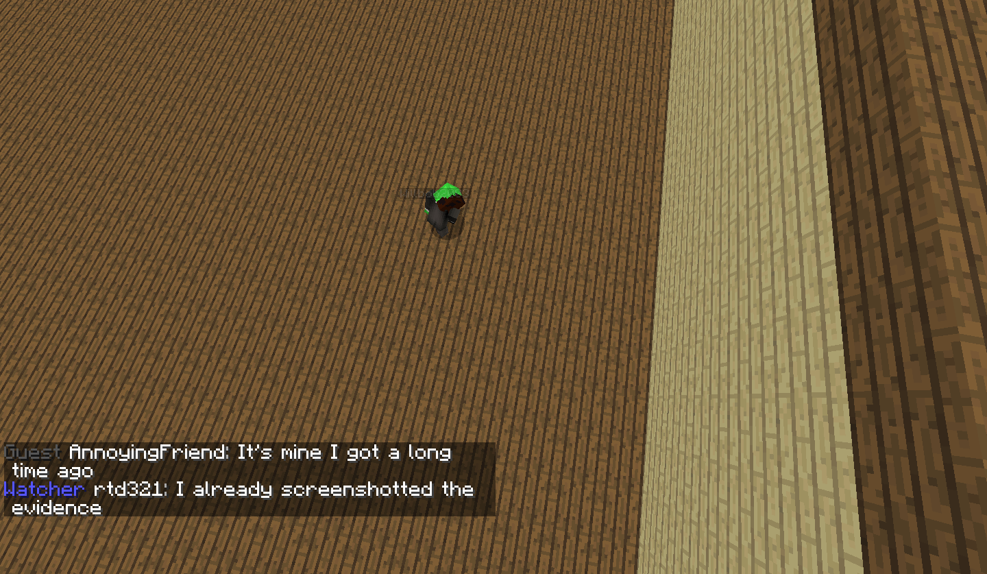 Willbob has made a minor greif on my plot in creative and I also saw him destroy the evidence but I did screen shot the evidence before he removed it today, September 9, 2015 GMT+4. He says that he was messing around. I dont want him to get into severe trouble and it was so minor anyway.