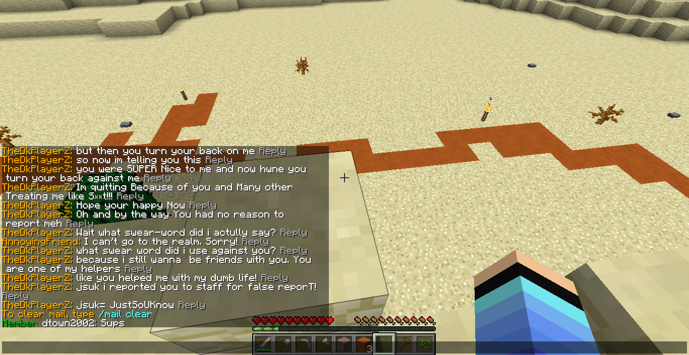 Jonathan110703 (but he has a new username now). He has be bothering me with swear words and he has said I have said some things that I never did. This has happened many times and I feel that I dont need to be treated like that. I confess that I did say that "I will leave this server if thats how Im going to be treated." but I just said that because I was mad about all of the things he had said and done. This may not be your main priority right now but if you could please do something about this that would be great. Here is a new screen shot.
