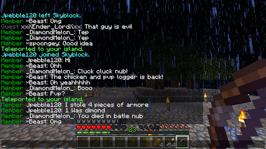 Today everyone was all mad at eachother when i got on. it was because people where accusing jpebble120 of hacking. he later admitted to it in chat, and i got a screenshot of it!