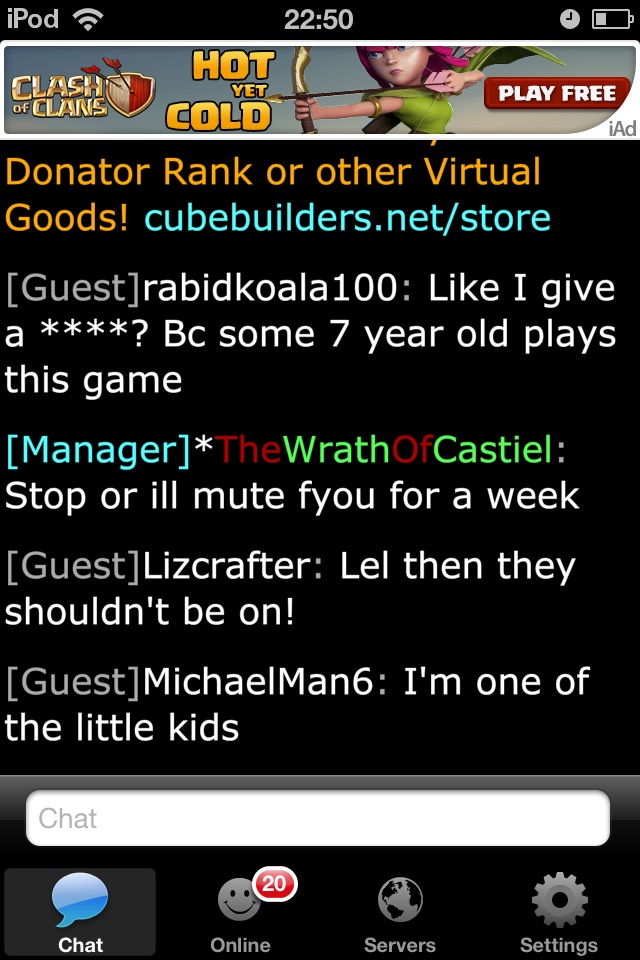 I was disgusted by this, and was using minechat. Ill add screenshots below