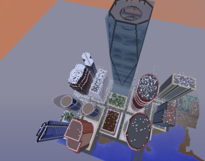I guess these pictures are mainly for Akiraff who suggested starting a futuristic city build. Here are a couple of the buildings that I built by myself.