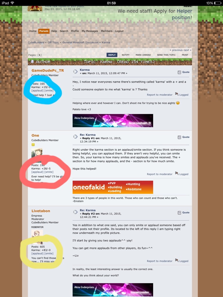 And if the applaud/smite button isnt there, I would speak to a member of staff about that. Are you sure its not on the left of peoples posts?