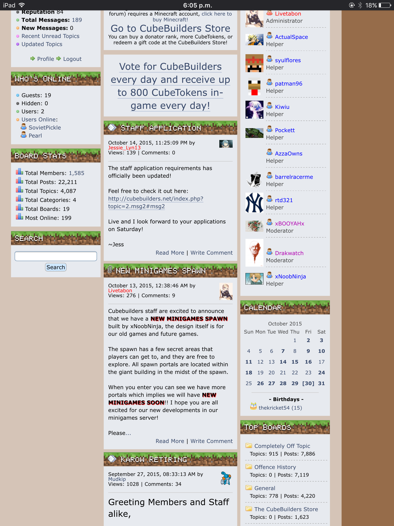 You can find the calendar for upcoming/passed birthdays or holidays ( Christmas, Halloween, etc ) for that month under the list of the servers staff members on the main page. ( at the far right side. )