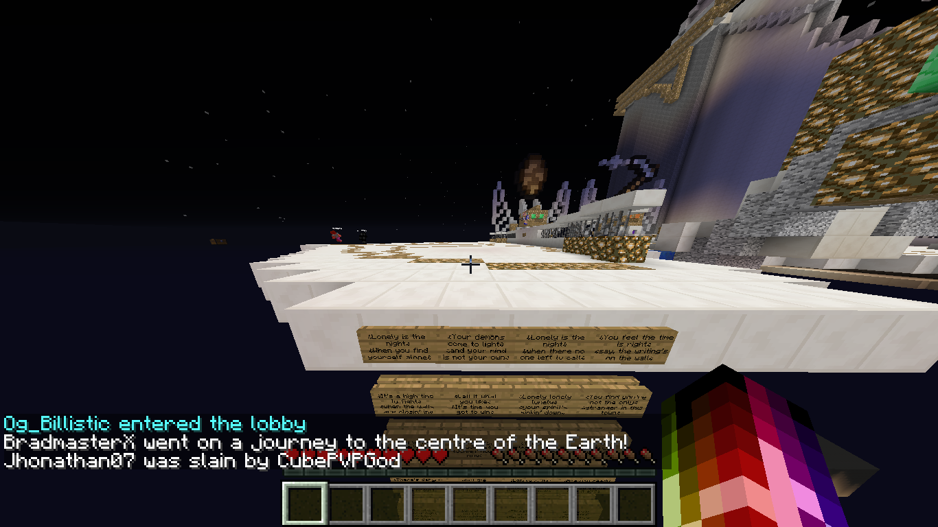 Cool song on the side of the pvp arena on the hub. Kinda creepy too.