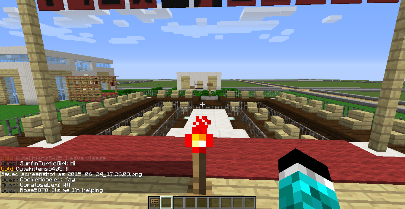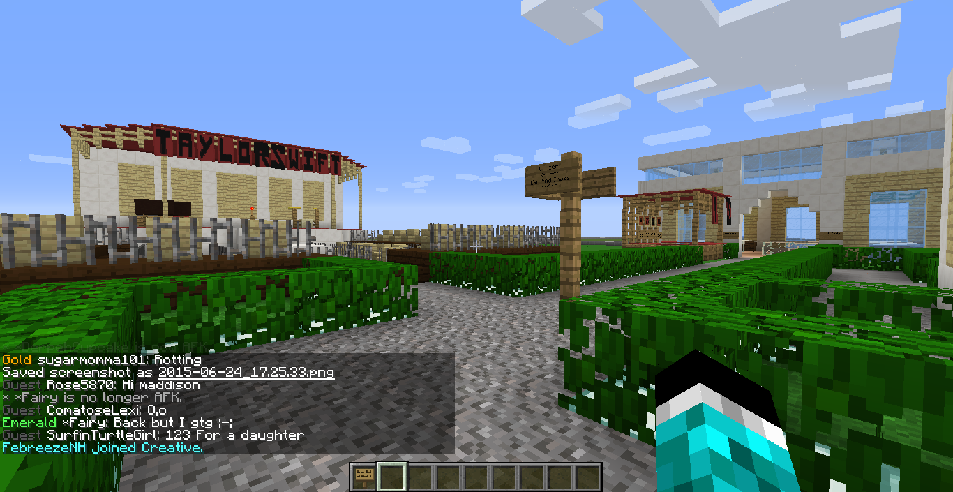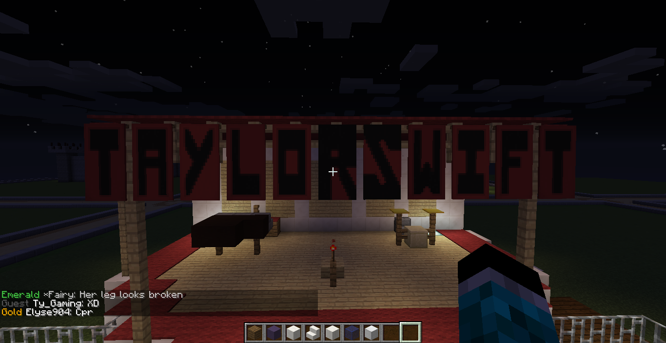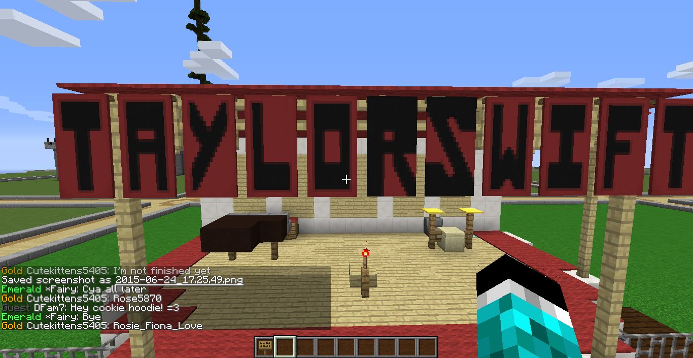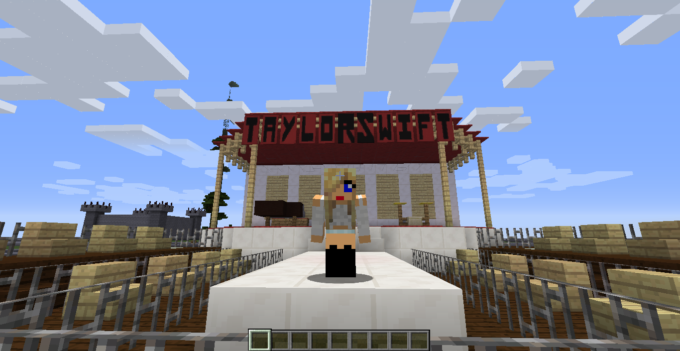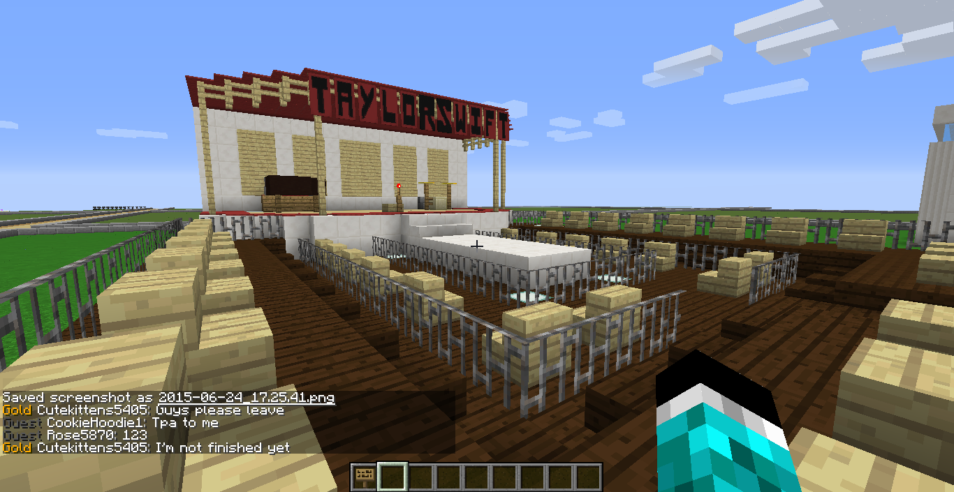 I made a Taylor Swift Red World Tour Concert!!! Complete with Taylor Swift banners and instruments. It also has seating and an area where crazy fans reach out there hands to try to touch her! ;D ;D Can you maybe find a place to set a warp to here please? Thank you :D