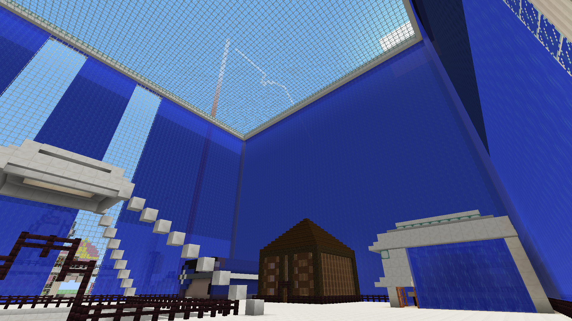 Water walls is a small idea I had when trying to make some type of building. I decided to make it work as a huge building for smaller builds within and outside. Although it is still in construction, I still would like to submit it as a warp. Big thanks to Ferocelion and TaylorBabes with some help while building. The plot is found in the current creative. The pictures below are screenshots of the build with night and day. The plot is illuminated with special lighting in the walkways. Before you go one more small thing. The plot isnt done just yet. There is more building to be done. If we do run out of space, I will need help with world edit to continue building under the plot. Thanks
