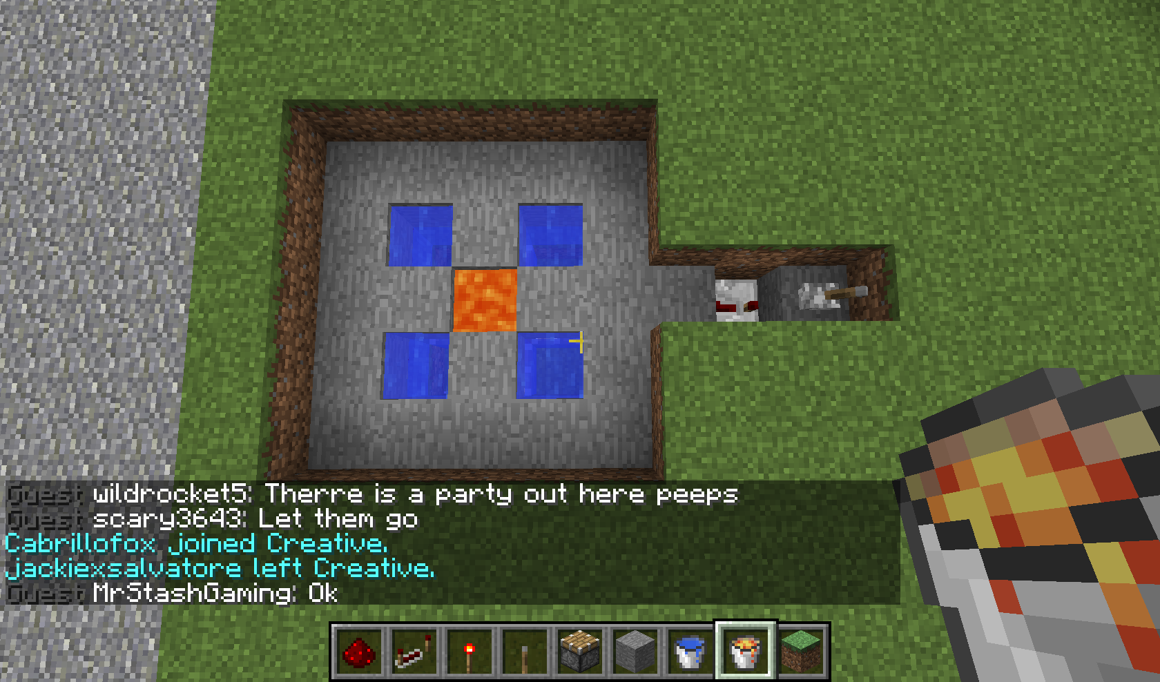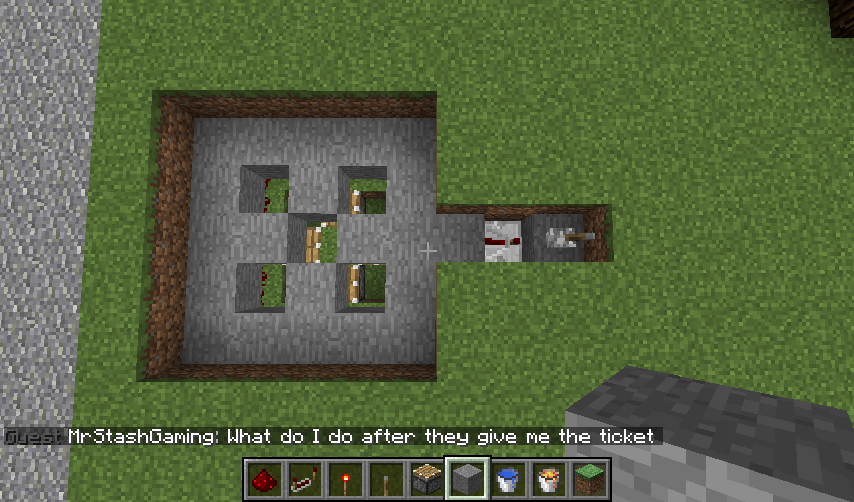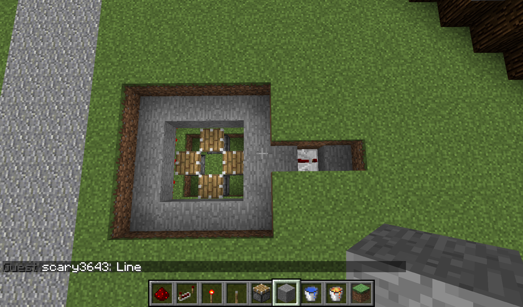 So here are the screenshots showing you step by step how to make the cobble stone generator. First dig a hole of 5 by 5, 3 down, center circle (not center block !!) 1 down more (like in screenshot 1). The rest you should be able to see from the screenshots.